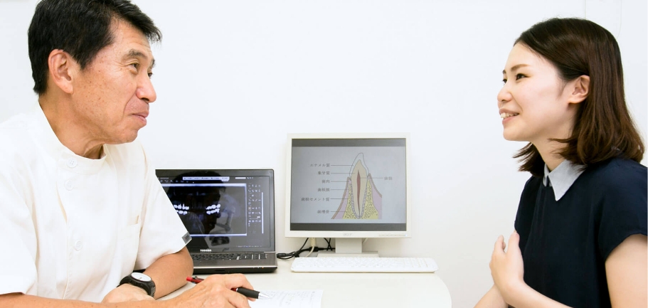 歯周病検査を基にして診断をし、その方の病状に即した治療計画を作成しご案内いたします。その際今後にかかる概算費用の見積もお作りします。